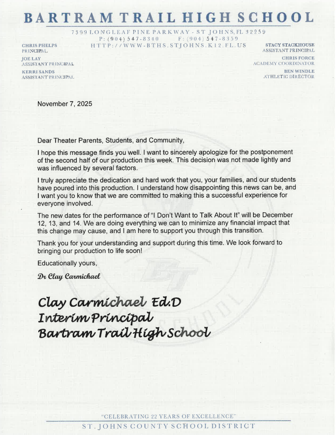 The following messages have been emailed, texted with attachment, and posted on the Bartram Trail Twitter Account. Please note that the date listed below represents the date the message was sent.