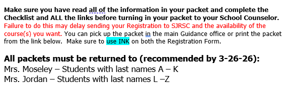 Online Petition: If a student earns a D or F in a Dual Enrollment course, or they Withdrawal from a course, they MUST complete a Petition asking SJRSC to allow students to continue in the Dual Enrollment program for the next semester. SJRSC will notify the student of their decision.