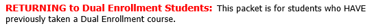 RETURNING to Dual Enrollment – Summer 2026